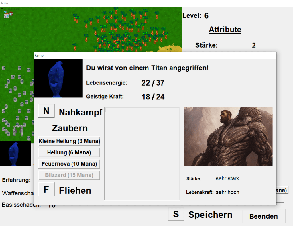 Terox ist ein kurzes rundenbasiertes Rollenspiel, was ich vor Ewigkeiten (20 Jahren) einmal für den Informatikunterricht programmiert habe.